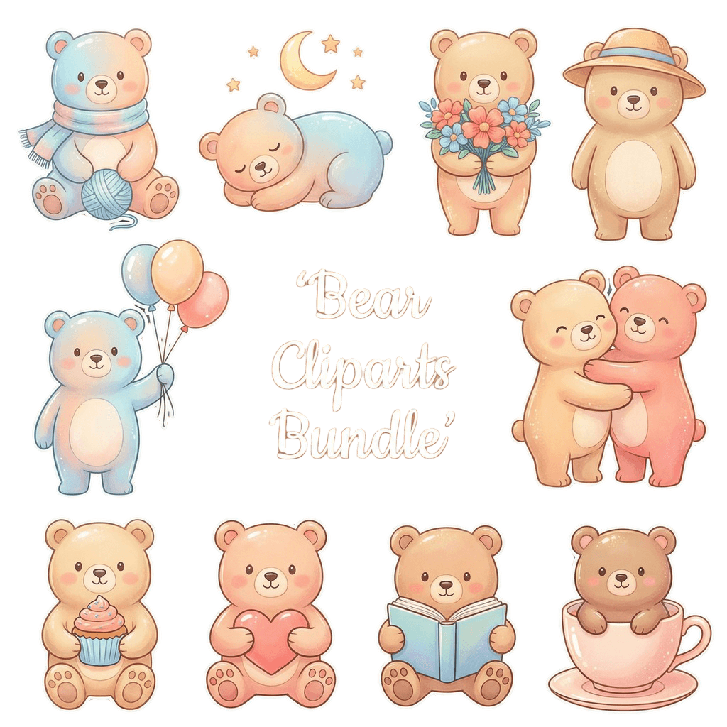 550 Bear Clipart Bundle includes adorable, high-quality bear illustrations perfect for kids’ books, printables, stickers, and creative design projects.