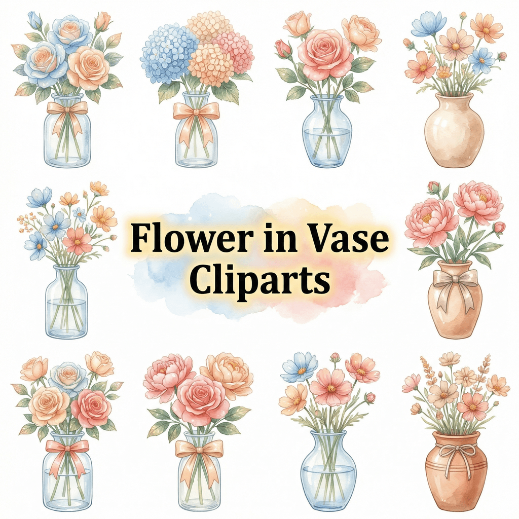 600 Flower in Vase Clipart Bundle – A stunning collection of beautifully detailed floral vase illustrations, perfect for coloring books, printables, sublimation, stickers, and digital designs.