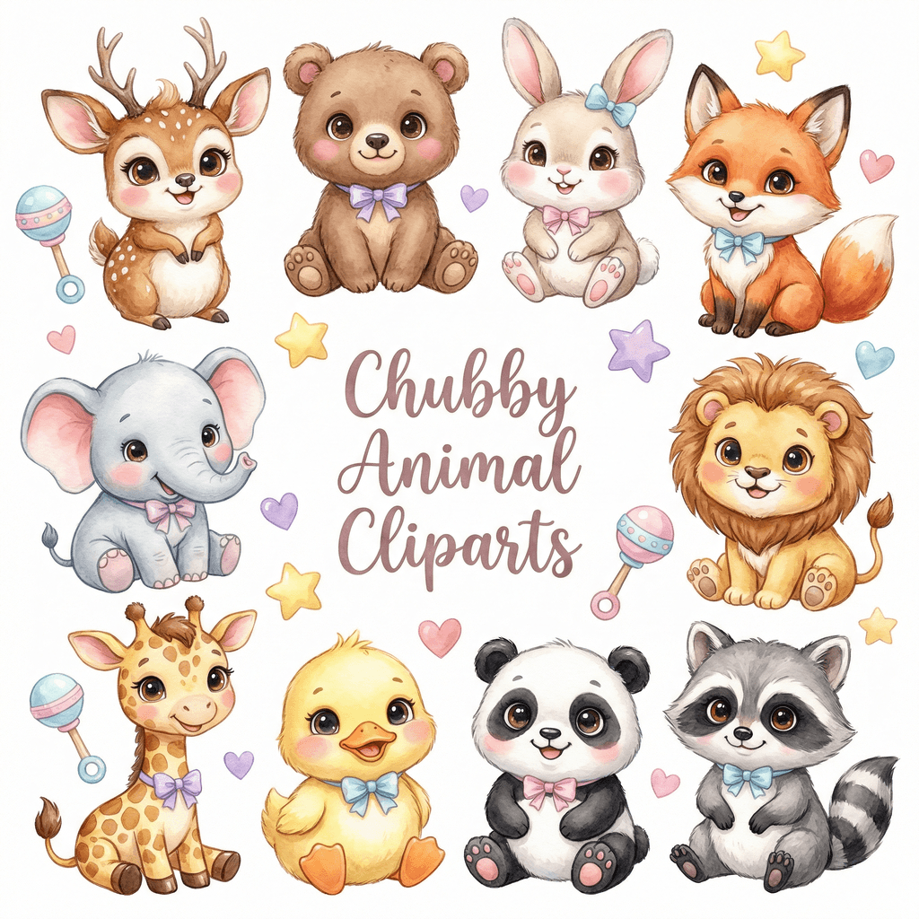 500 Chubby Animal Clipart Bundle features irresistibly cute, high-quality illustrations perfect for stickers, printables, sublimation, kids’ products, and more.