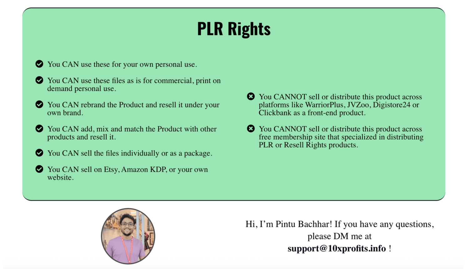 If you grab the PLR License… you are ALLOWED to resell the content to anyone, in any marketplace … or make it as a bonus.