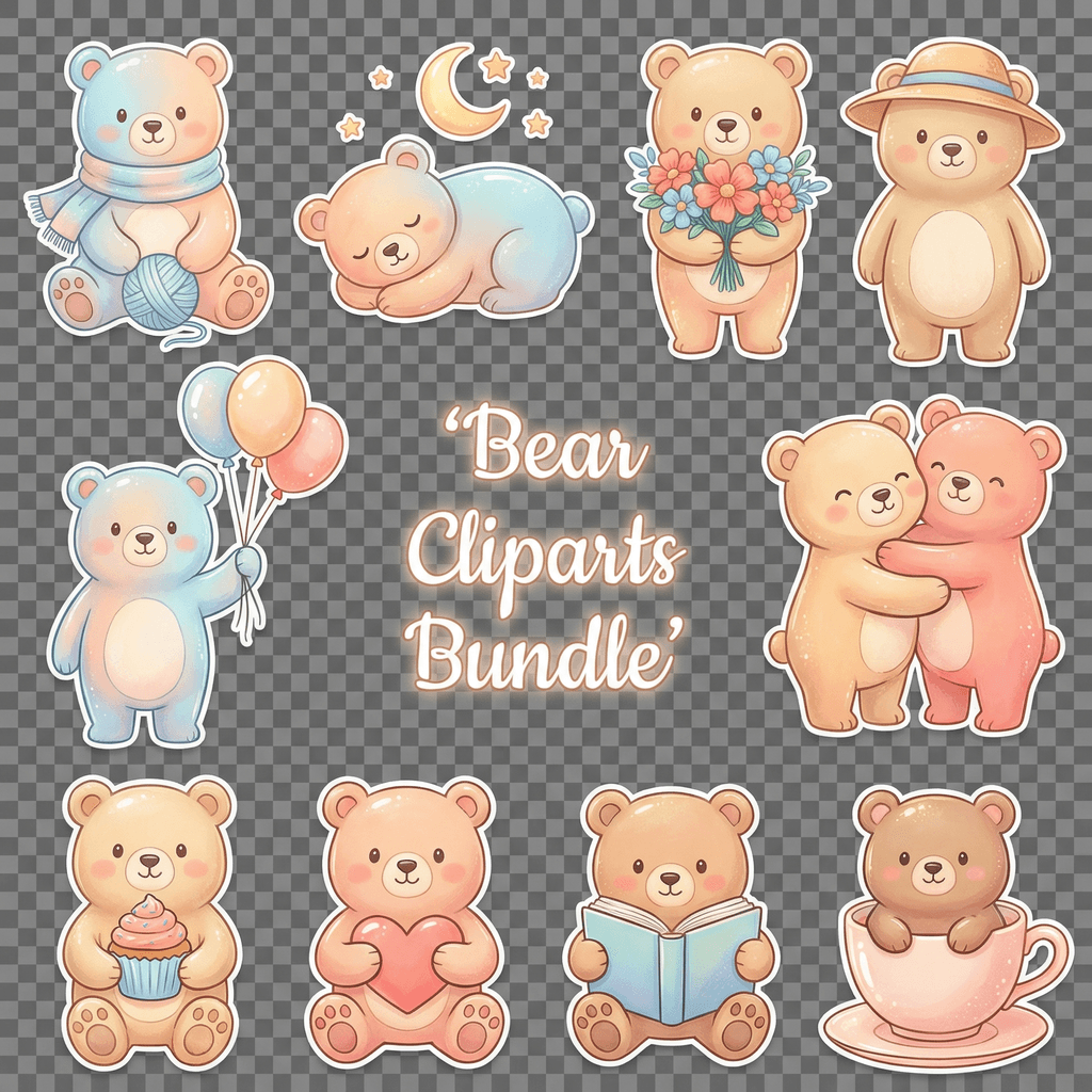 Inside this bundle, you’ll get 550 high-quality bear-themed cliparts in a variety of cute, playful, woodland, cozy, and seasonal styles. Perfect for kids’ products, nursery decor, party printables, planners, stickers, sublimation designs, coloring books, KDP interiors, social media graphics, and so much more!