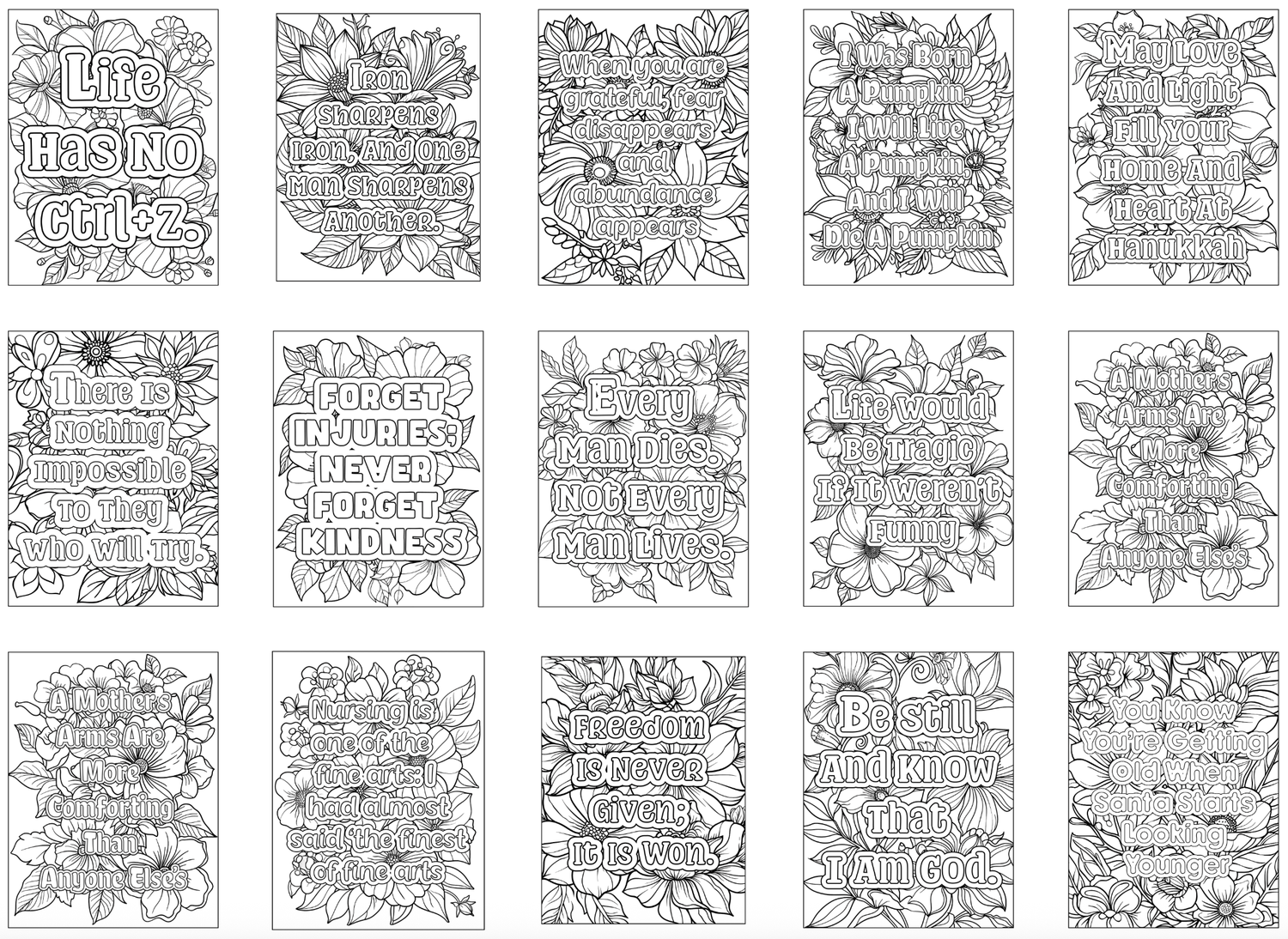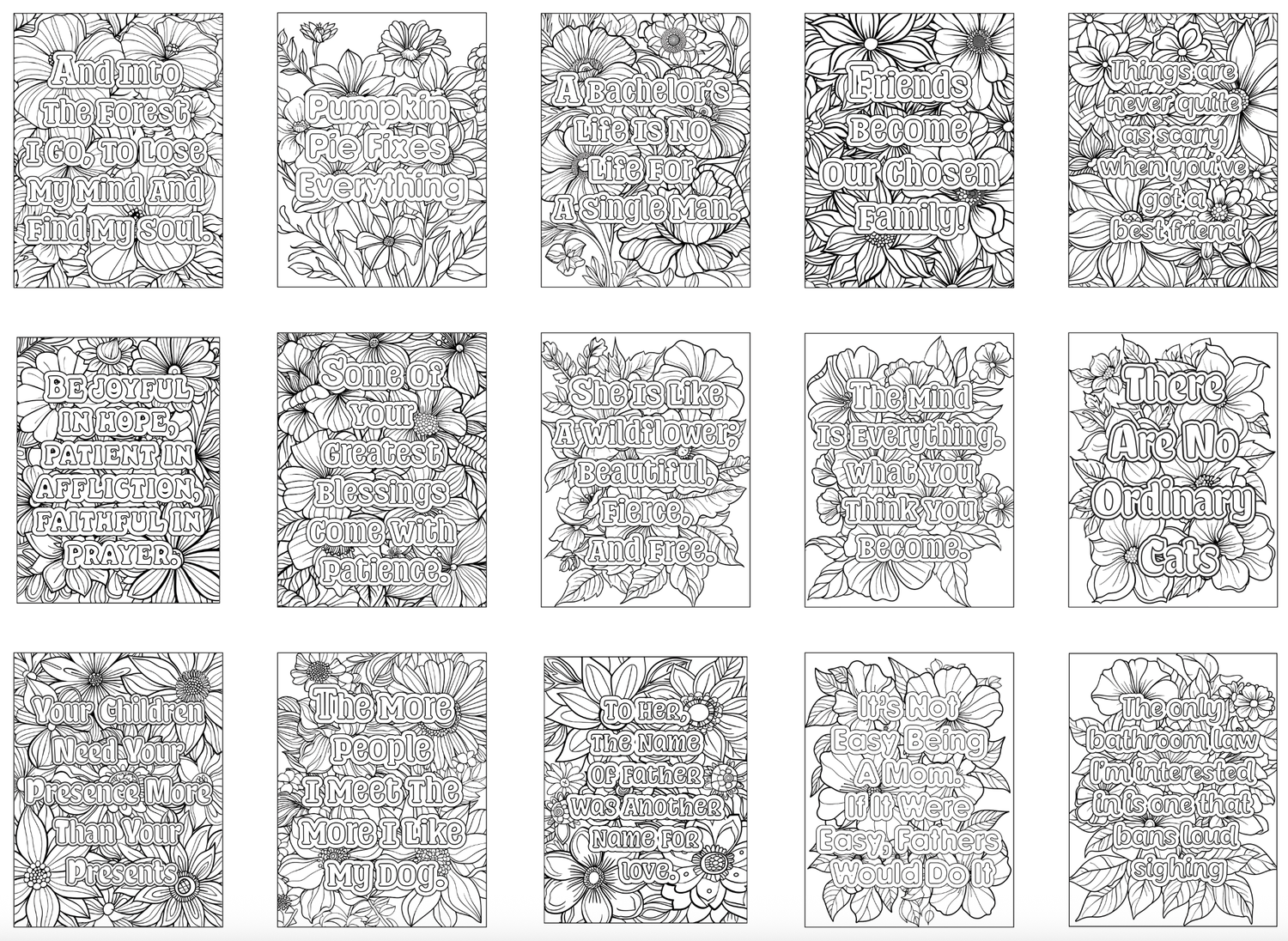 A Small Part of the 1450+ High-Quality Quotes Coloring Pages from 40 Different Themed...