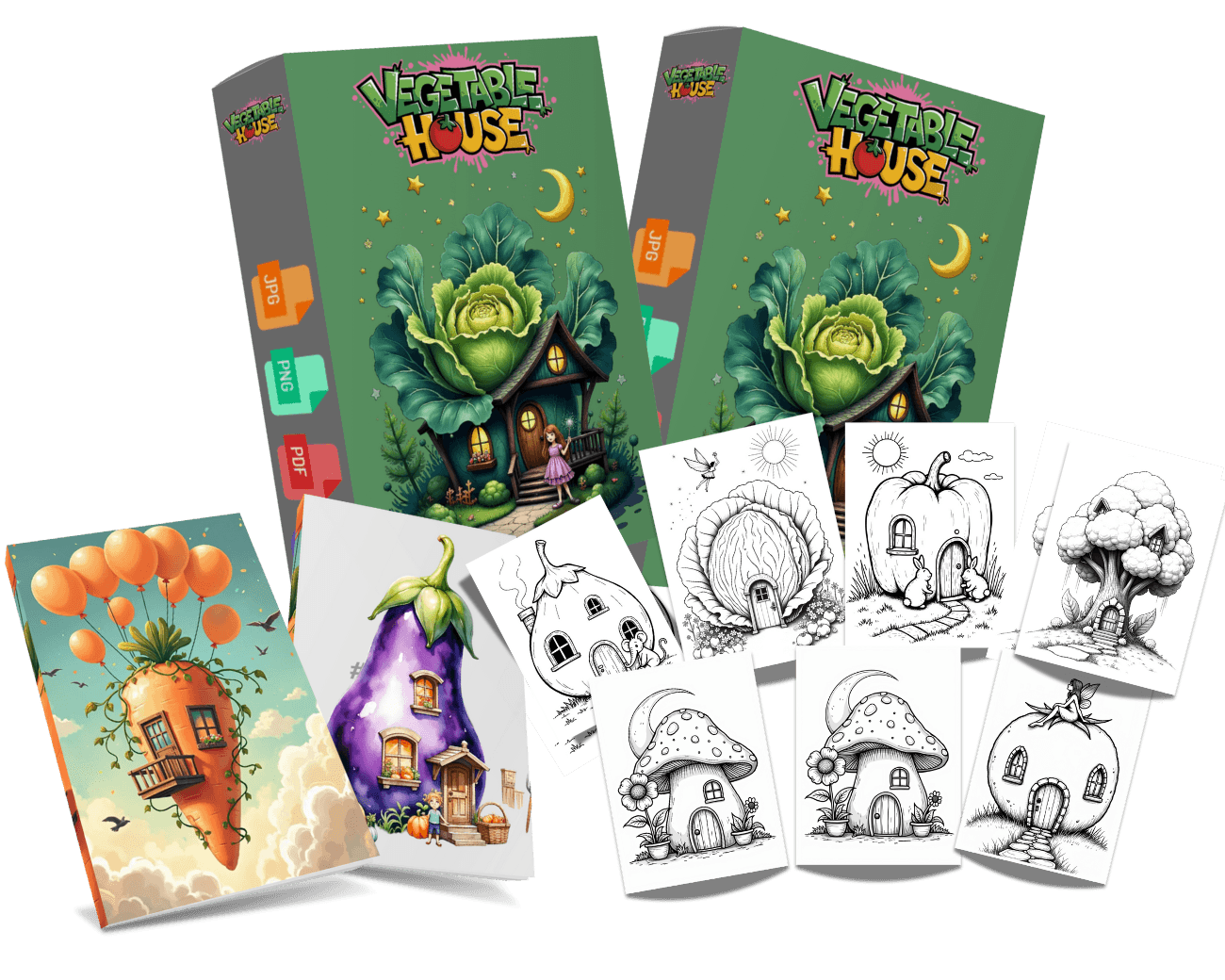 Vegetable House Coloring Book is a mega collection of various designs & illustrations to create an activity book for kids and adults in 2025.Provided in JPG formats that you can use to create your own publishing projects.